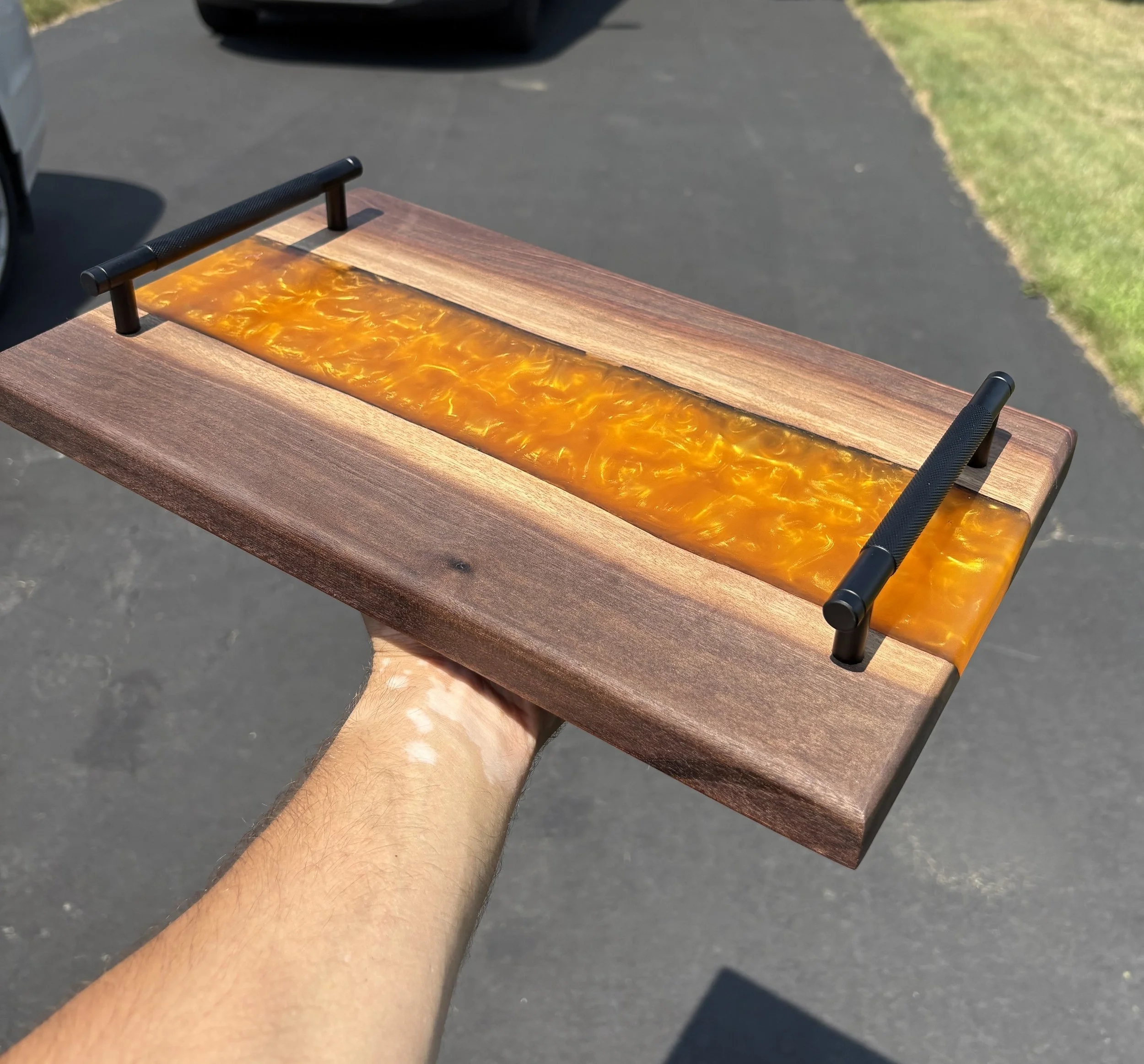 Handmade Epoxy Standing Desk $1,500.00 Sold out Epoxy River Coffee Table $1,000.00 Sold out Handmade Epoxy Style Cutting Board Sale Price: $45.00 Original Price: $60.00 Sale Epoxy Style Serving Board $70.00